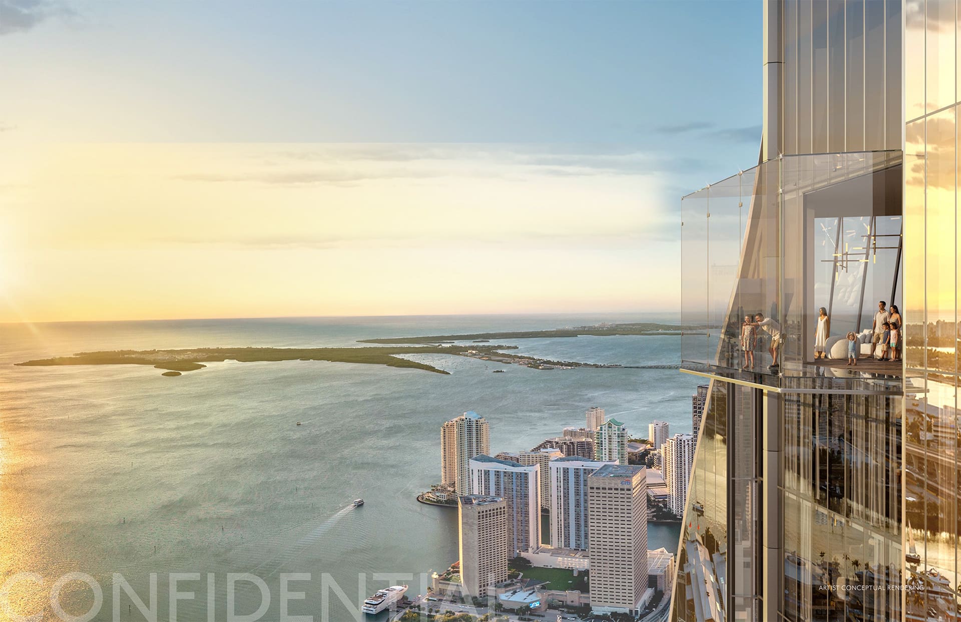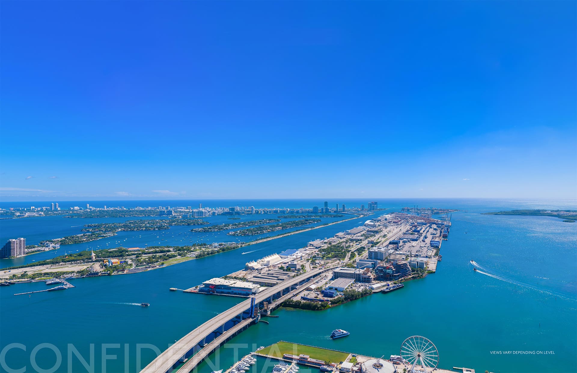 - Unobstructed views of downtown, Miami Beach and the Atlantic Ocean